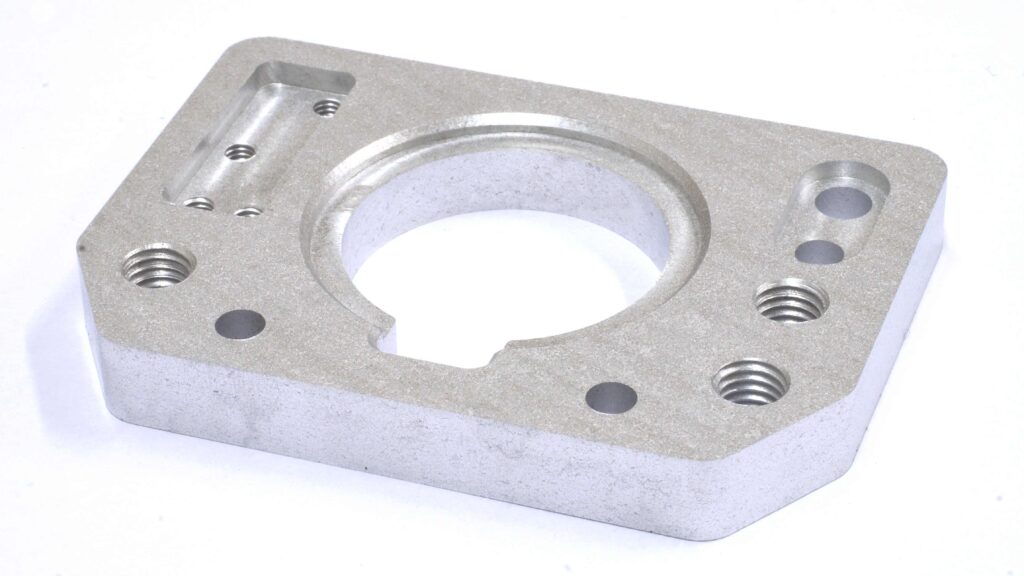 ClicktoPart automatically deburrs aluminum parts using an electrochemical etching process. Slight surface discolorations are normal, and while the process usually deburrs the entire part, minor burrs may remain.